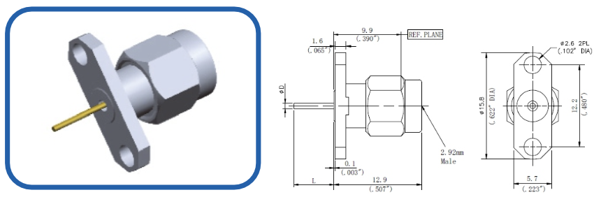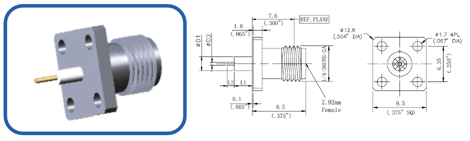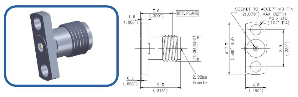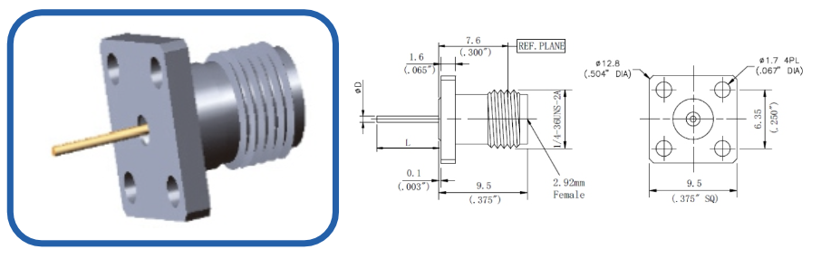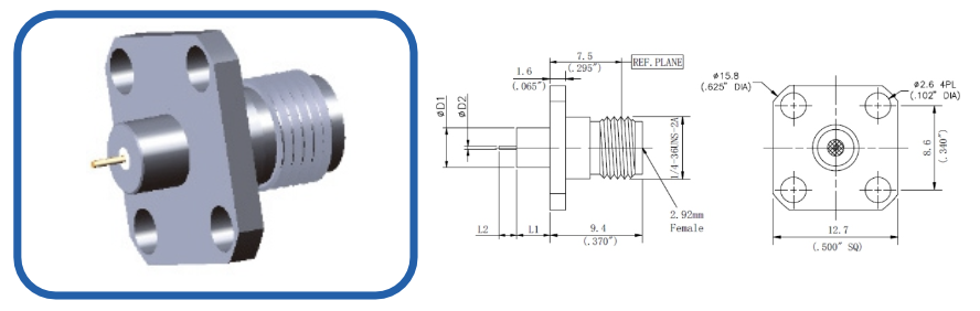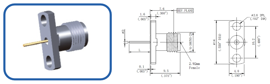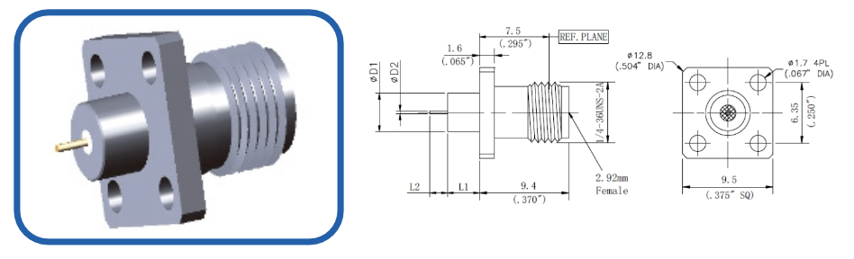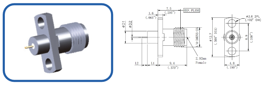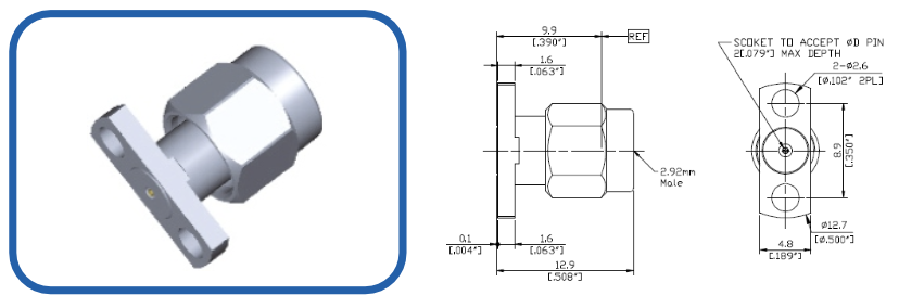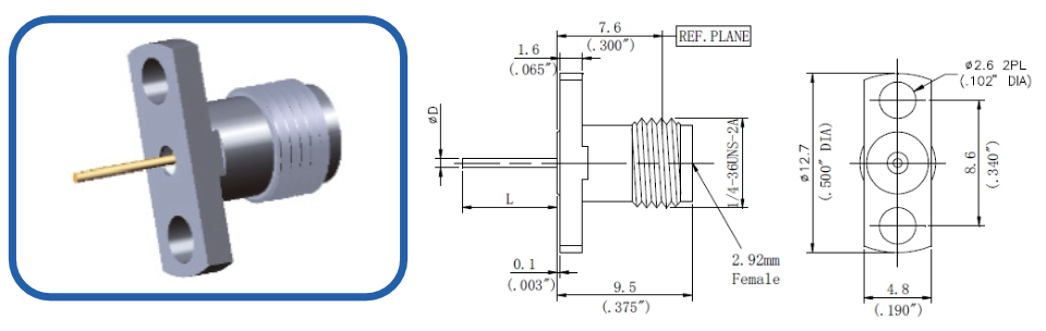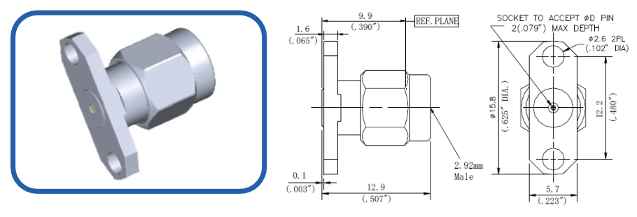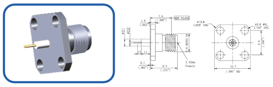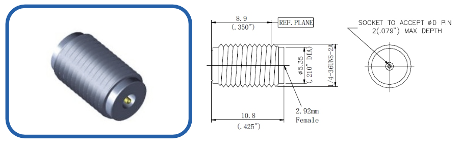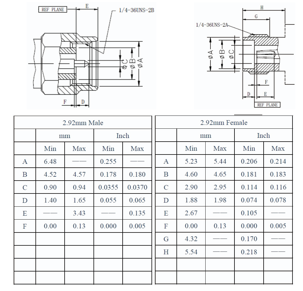 2.92mm系列射频同轴连接器又称为K型,SMK连接器,它是由美国WILLT RON公司发明。其最高工作频率可达46GHz,覆盖了整个8mm频段。2.92mm连接器目前是国内外市场需求量最大的主流毫米波连接器,其界面可同时兼容SMA和3.5mm连接器,因此成为毫米波连接器市场首选产品 。