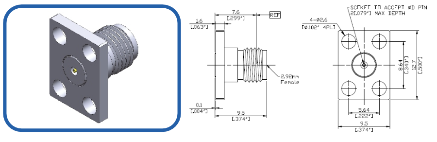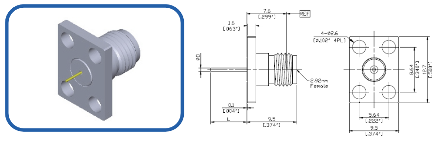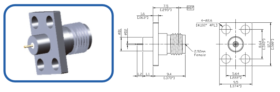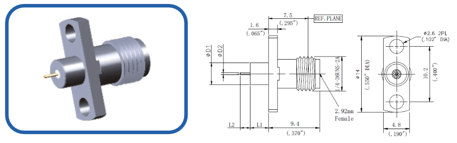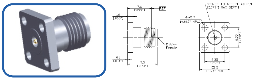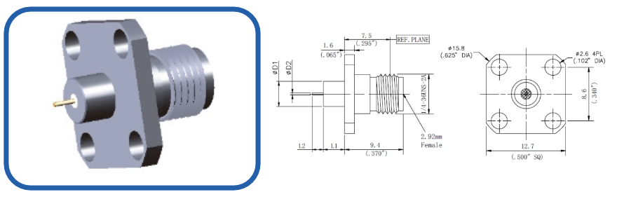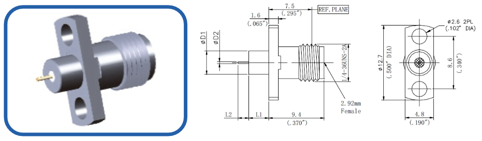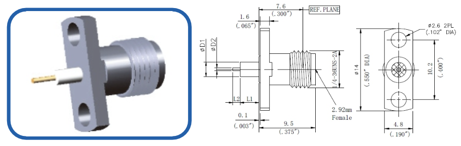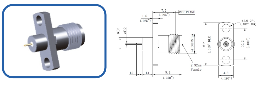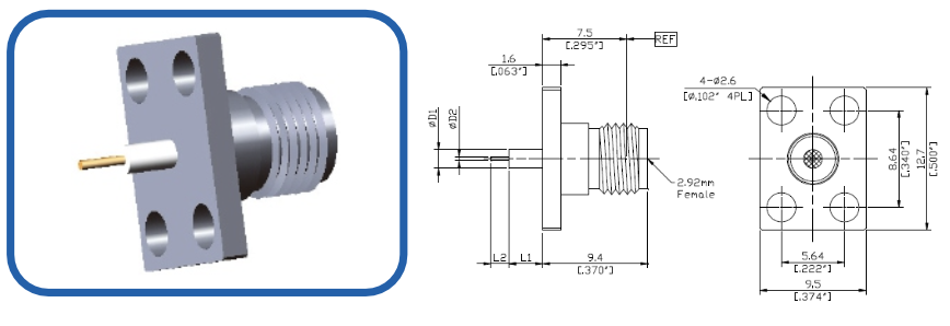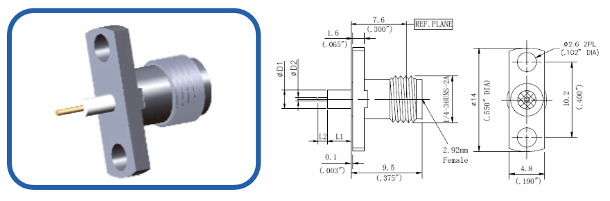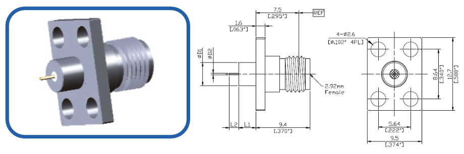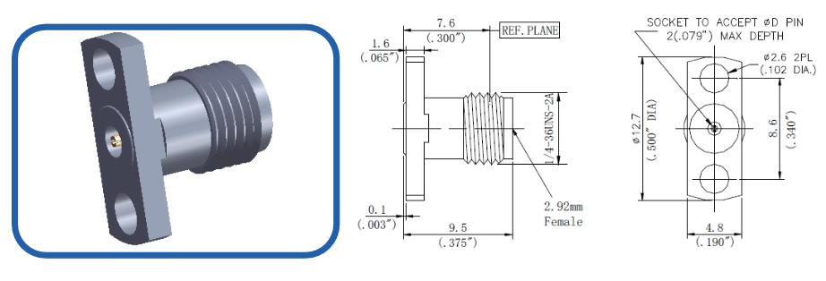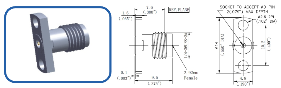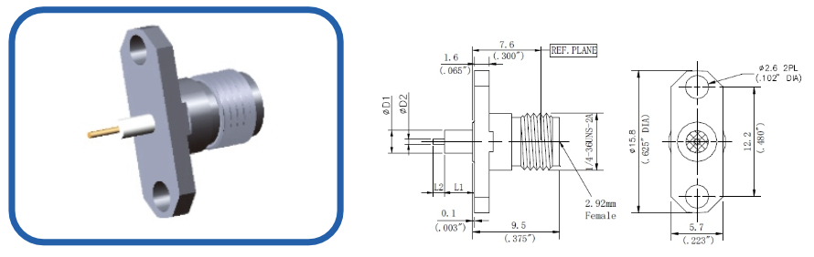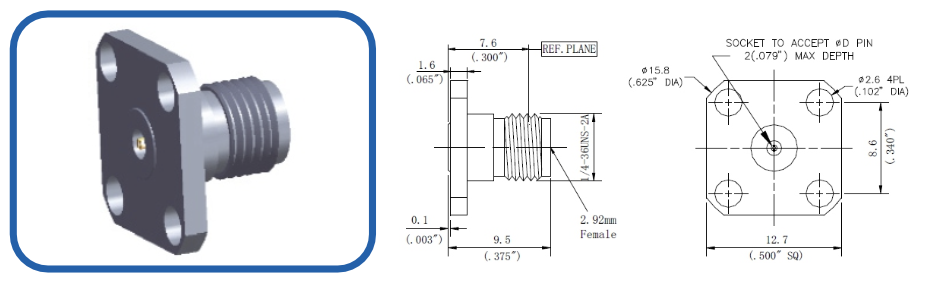 2.92mm系列射频同轴连接器又称为K型,SMK连接器,它是由美国WILLT RON公司发明。其最高工作频率可达46GHz,覆盖了整个8mm频段。2.92mm连接器目前是国内外市场需求量最大的主流毫米波连接器,其界面可同时兼容SMA和3.5mm连接器,因此成为毫米波连接器市场首选产品 。
