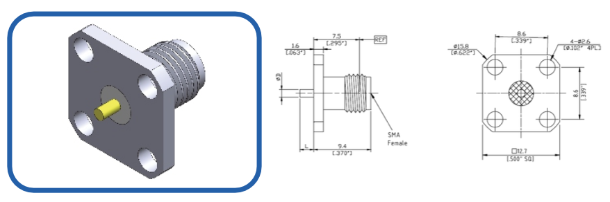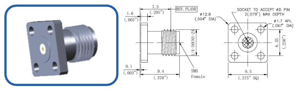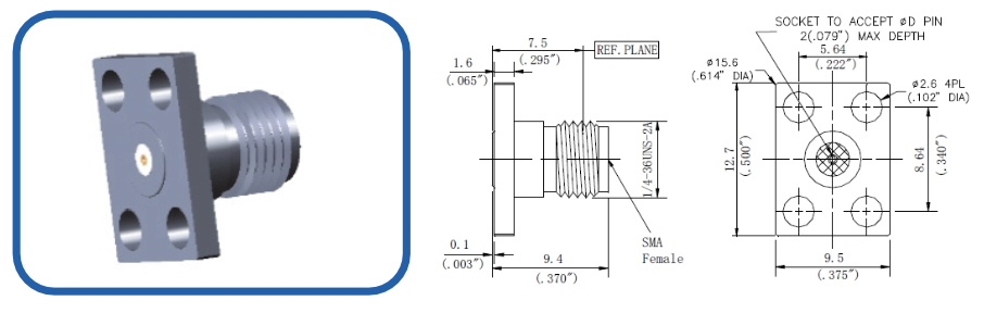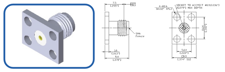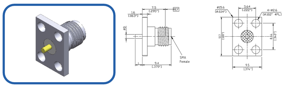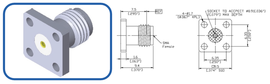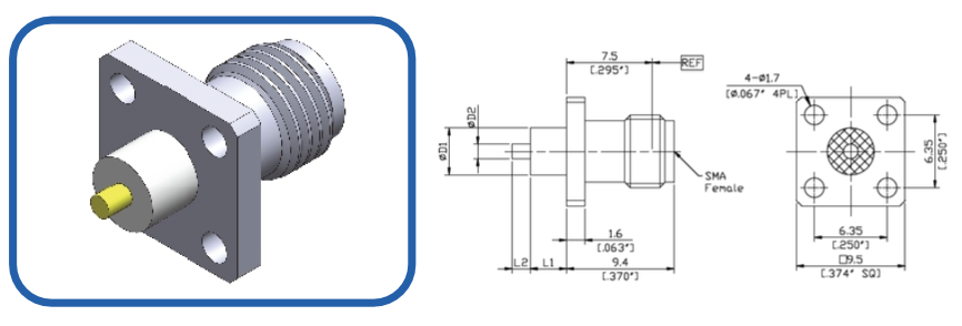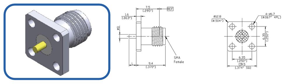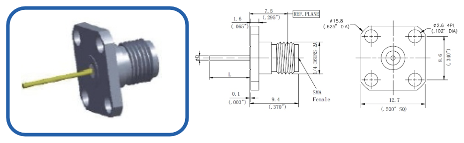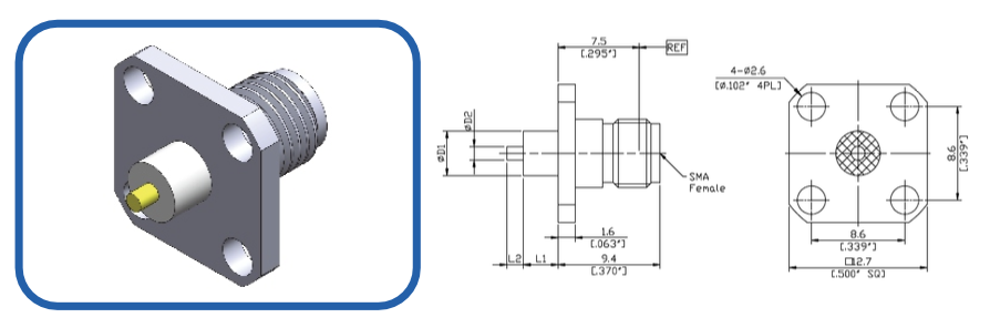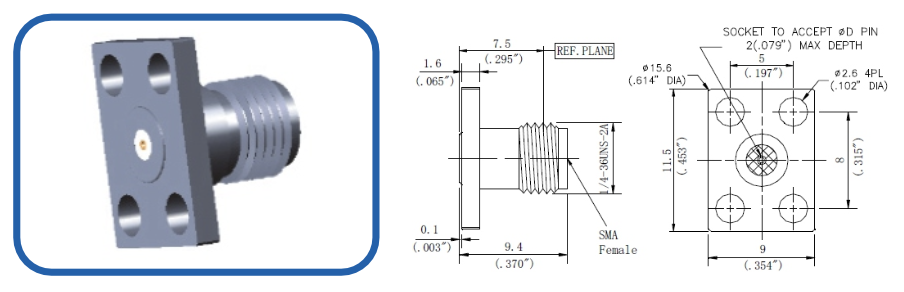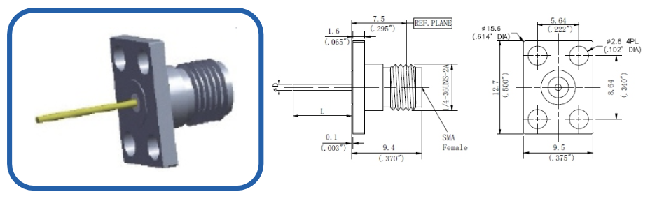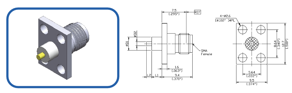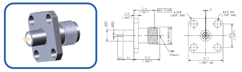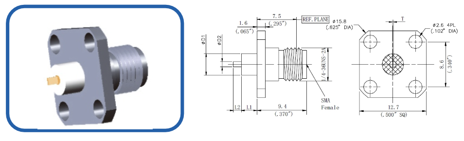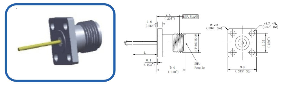 Email: sales@relcon.cn 首页 产品中心 联系我们 产品中心 首页>产品中心>穿墙/面板连接器系列 RELCON集科研、开发、制造及销售于一体,为航空、航天、兵器、船舶、电子、核工业、风电、轨道交通、新能源、机床、石油等领域提供专业、高效的服务 穿墙/面板连接器系列 PRODUCTS SMA系列 界面规格 SMA连接器是一种应用广泛的小型螺纹连接的射频同轴连接器,具有体积,频带宽,机械性能优异,可靠性高,使用寿命长等优点,最高使用频率 可达27GHz 界面尺寸 军友射频的SMA连接器,具有以下优势:1. 频率DC-27GHz2. 低电压驻波比3. 主体一体式设计,防止信号泄露4. 耐受温度可达165°C5. 不锈钢外导体,耐用性更优良 型号 频率/驻波比 D插孔直径 SMA-K-F4-01-A DC~18GHz/VSWR≤1.1018~27GHz/VSWR≤1.15 0.23mm/0.009" SMA-K-F4-02-A DC~18GHz/VSWR≤1.1018~27GHz/VSWR≤1.15 0.30mm/0.012" SMA-K-F4-03-A DC~18GHz/VSWR≤1.1018~27GHz/VSWR≤1.15 0.38mm/0.015" SMA-K-F4-04-A DC~18GHz/VSWR≤1.1018~27GHz/VSWR≤1.15 0.46mm/0.018" SMA-K-F4-05-A DC~18GHz/VSWR≤1.1018~27GHz/VSWR≤1.15 0.51mm/0.020" 型号 频率/驻波比 D插孔直径 SMA-K-F4-06-A DC~18GHz/VSWR≤1.1018~27GHz/VSWR≤1.15 0.23mm/0.009" SMA-K-F4-07-A DC~18GHz/VSWR≤1.1018~27GHz/VSWR≤1.15 0.30mm/0.012" SMA-K-F4-08-A DC~18GHz/VSWR≤1.1018~27GHz/VSWR≤1.15 0.38mm/0.015" SMA-K-F4-09-A DC~18GHz/VSWR≤1.1018~27GHz/VSWR≤1.15 0.46mm/0.018" SMA-K-F4-10-A DC~18GHz/VSWR≤1.1018~27GHz/VSWR≤1.15 0.51mm/0.020" 型号 频率/驻波比 D插孔直径 SMA-K-F4-11-A DC~18GHz/VSWR≤1.1018~27GHz/VSWR≤1.15 0.23mm/0.009" SMA-K-F4-12-A DC~18GHz/VSWR≤1.1018~27GHz/VSWR≤1.15 0.30mm/0.012" SMA-K-F4-13-A DC~18GHz/VSWR≤1.1018~27GHz/VSWR≤1.15 0.38mm/0.015" SMA-K-F4-14-A DC~18GHz/VSWR≤1.1018~27GHz/VSWR≤1.15 0.46mm/0.018" SMA-K-F4-15-A DC~18GHz/VSWR≤1.1018~27GHz/VSWR≤1.15 0.51mm/0.020" 型号 频率/驻波比 D插孔直径 SMA-K-F4-16-A DC~18GHz/VSWR≤1.1018~27GHz/VSWR≤1.15 0.23mm/0.009" SMA-K-F4-17-A DC~18GHz/VSWR≤1.1018~27GHz/VSWR≤1.15 0.30mm/0.012" SMA-K-F4-18-A DC~18GHz/VSWR≤1.1018~27GHz/VSWR≤1.15 0.38mm/0.015" SMA-K-F4-19-A DC~18GHz/VSWR≤1.1018~27GHz/VSWR≤1.15 0.46mm/0.018" SMA-K-F4-20-A DC~18GHz/VSWR≤1.1018~27GHz/VSWR≤1.15 0.51mm/0.020" 型号 频率/驻波比 D插孔直径 SMA-K-F4-21-A DC~18GHz/VSWR≤1.1018~27GHz/VSWR≤1.15 0.91mm/0.036" 型号 频率/驻波比 D插孔直径 SMA-K-F4-22-A DC~18GHz/VSWR≤1.1018~27GHz/VSWR≤1.15 0.91mm/0.036" 型号 D尺寸 L长度尺寸 SMA-K-F4-23-A 0.64mm/0.025" 18mm/0.71" SMA-K-F4-24-A 0.87mm/0.034" 26mm/1.024" SMA-K-F4-25-A 0.87mm/0.034" 10.92mm/0.430" 型号 D尺寸 L长度尺寸 SMA-K-F4-26-A 0.64mm/0.025" 18mm/0.71" SMA-K-F4-27-A 0.87mm/0.034" 26mm/1.024" SMA-K-F4-28-A 0.87mm/0.034" 10.92mm/0.430" 型号 D尺寸 L长度尺寸 SMA-K-F4-29-A 0.64mm/0.025" 18mm/0.71" SMA-K-F4-30-A 0.87mm/0.034" 26mm/1.024" SMA-K-F4-31-A 0.87mm/0.034" 10.92mm/0.430" 型号 D尺寸 L长度尺寸 SMA-K-F4-32-A 0.64mm/0.025" 18mm/0.71" SMA-K-F4-33-A 0.87mm/0.034" 26mm/1.024" SMA-K-F4-34-A 0.87mm/0.034" 10.92mm/0.430" 型号 D尺寸 L长度尺寸 SMA-K-F4-35-A 1.27mm/0.05" 2.3/0.090" 型号 D尺寸 L长度尺寸 SMA-K-F4-36-A 1.27mm/0.05" 2.3/0.090" 型号 D尺寸 L长度尺寸 SMA-K-F4-37-A 1.27mm/0.05" 2.3/0.090" 型号 D尺寸 L长度尺寸 SMA-K-F4-38-A φD1(4.1mm/0.161")φD2(1.27mm/0.05") L1(3.17mm/0.125")L2(1.57mm/0.062") SMA-K-F4-39-A φD1(4.1mm/0.161")φD2(1.27mm/0.05") L1(5mm/0.197")L2(2mm/0.079") SMA-K-F4-40-A φD1(4.1mm/0.161")φD2(1.27mm/0.05") L1(5mm/0.197")L2(2mm/0.079") 型号 D尺寸 L长度尺寸 SMA-K-F4-41-A φD1(4.1mm/0.161")φD2(1.27mm/0.05") L1(3.17mm/0.125")L2(1.57mm/0.062") SMA-K-F4-42-A φD1(4.1mm/0.161")φD2(1.27mm/0.05") L1(5mm/0.197")L2(2mm/0.079") SMA-K-F4-43-A φD1(4.1mm/0.161")φD2(1.27mm/0.05") L1(5mm/0.197")L2(2mm/0.079") 型号 D尺寸 L长度尺寸 SMA-K-F4-43-A φD1(4.1mm/0.161")φD2(1mm/0.039") L1(4mm/0.158")L2(1.5mm/0.059") 型号 D尺寸 L长度尺寸 SMA-K-F4-44-A φD1(4.1mm/0.161")φD2(1.27mm/0.05") L1(3.17mm/0.125")L2(1.57mm/0.062") SMA-K-F4-45-A φD1(4.1mm/0.161")φD2(1.27mm/0.05") L1(5mm/0.197")L2(2mm/0.079") SMA-K-F4-46-A φD1(4.1mm/0.161")φD2(1.27mm/0.05") L1(5mm/0.197")L2(2mm/0.079") 型号 D尺寸 L长度尺寸 SMA-K-F4-47-A φD1(4mm/0.158")φD2(0.8mm/0.031") L1(4mm/0.158")L2(2mm/0.079") SMA-K-F4-48-A φD1(4mm/0.158")φD2(0.38mm/0.015") L1(3mm/0.118")L2(2mm/0.079") SMA-K-F4-49-A φD1(4mm/0.158")φD2(0.38mm/0.015") L1(3mm/0.118")L2(3mm/0.079") SMA-K-F4-50-A φD1(4mm/0.158")φD2(0.38mm/0.015") L1(3mm/0.118")L2(0.4mm/0.079") 型号 D尺寸 L长度尺寸 SMA-K-F4-51-A φD1(4mm/0.158")φD2(0.8mm/0.031") L1(4mm/0.158")L2(2mm/0.079") SMA-K-F4-52-A φD1(4mm/0.158")φD2(0.38mm/0.015") L1(3mm/0.118")L2(2mm/0.079") SMA-K-F4-53-A φD1(4mm/0.158")φD2(0.38mm/0.015") L1(3mm/0.118")L2(3mm/0.079") SMA-K-F4-54-A φD1(4mm/0.158")φD2(0.38mm/0.015") L1(3mm/0.118")L2(4mm/0.079") 型号 D尺寸 L长度尺寸 SMA-K-F4-55-A φD1(4mm/0.158")φD2(0.8mm/0.031") L1(4mm/0.158")L2(2mm/0.079") SMA-K-F4-56-A φD1(4mm/0.158")φD2(0.38mm/0.015") L1(3mm/0.118")L2(2mm/0.079") SMA-K-F4-57-A φD1(4mm/0.158")φD2(0.38mm/0.015") L1(3mm/0.118")L2(3mm/0.079") SMA-K-F4-58-A φD1(4mm/0.158")φD2(0.38mm/0.015") L1(3mm/0.118")L2(0.4mm/0.079") 型号 D尺寸 L长度尺寸 SMA-K-F4-59-A φD1(4mm/0.158")φD2(0.8mm/0.031") L1(4mm/0.158")L2(2mm/0.079") SMA-K-F4-60-A φD1(4mm/0.158")φD2(0.38mm/0.015") L1(3mm/0.118")L2(2mm/0.079") SMA-K-F4-61-A φD1(4mm/0.158")φD2(0.38mm/0.015") L1(3mm/0.118")L2(3mm/0.079") SMA-K-F4-62-A φD1(4mm/0.158")φD2(0.38mm/0.015") L1(3mm/0.118")L2(0.4mm/0.079") 型号 D尺寸 L长度尺寸 SMA-K-F4-63-A φD1(4mm/0.158")φD2(0.8mm/0.031") L1(4mm/0.158")L2(1.5mm/0.059") 型号 D尺寸 L长度尺寸 SMA-K-F4-64-A φD1(4mm/0.158")φD2(0.8mm/0.031") L1(4mm/0.158")L2(1.5mm/0.059") 型号 D尺寸 L长度尺寸 SMA-K-F4-65-A φD1(4mm/0.158")φD2(0.8mm/0.031") L1(4mm/0.158")L2(1.5mm/0.059") 型号 D尺寸 L长度尺