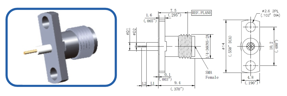 Email: sales@relcon.cn 首页 产品中心 联系我们 产品中心 首页>产品中心>穿墙/面板连接器系列 RELCON集科研、开发、制造及销售于一体,为航空、航天、兵器、船舶、电子、核工业、风电、轨道交通、新能源、机床、石油等领域提供专业、高效的服务 穿墙/面板连接器系列 PRODUCTS 型号 频率/驻波比 D插孔直径 SMA-J-F4-01-A DC~18GHz/VSWR≤1.1018~27GHz/VSWR≤1.15 0.23mm/0.009" SMA-J-F4-02-A DC~18GHz/VSWR≤1.1018~27GHz/VSWR≤1.15 0.30mm/0.012" SMA-J-F4-03-A DC~18GHz/VSWR≤1.1018~27GHz/VSWR≤1.15 0.38mm/0.015" SMA-J-F4-04-A DC~18GHz/VSWR≤1.1018~27GHz/VSWR≤1.15 0.46mm/0.018" SMA-J-F4-05-A DC~18GHz/VSWR≤1.1018~27GHz/VSWR≤1.15 0.51mm/0.020" 型号 频率/驻波比 D插孔直径 SMA-J-F4-06-A DC~18GHz/VSWR≤1.1018~27GHz/VSWR≤1.15 0.23mm/0.009" SMA-J-F4-07-A DC~18GHz/VSWR≤1.1018~27GHz/VSWR≤1.15 0.30mm/0.012" SMA-J-F4-08-A DC~18GHz/VSWR≤1.1018~27GHz/VSWR≤1.15 0.38mm/0.015" SMA-J-F4-09-A DC~18GHz/VSWR≤1.1018~27GHz/VSWR≤1.15 0.46mm/0.018" SMA-J-F4-10-A DC~18GHz/VSWR≤1.1018~27GHz/VSWR≤1.15 0.51mm/0.020" 型号 D尺寸 L长度尺寸 SMA-J-F4-11-A φD1(4.1mm/0.162")φD2(1mm/0.04") L1(4mm/0.158")L2(1.5mm/0.06")T(0.2mm/0.008") 型号 D尺寸 L长度尺寸 SMA-J-F4-12-A φD1(4.1mm/0.162")φD2(1mm/0.04") L1(4mm/0.158")L2(1.5mm/0.06")T(0.2mm/0.008") 型号 D尺寸 L长度尺寸 SMA-J-F4-13-A φD1(4mm/0.158")φD2(0.38mm/0.015") L1(3mm/0.118")L2(2mm/0.079") 型号 D尺寸 L长度尺寸 SMA-J-F4-14-A φD1(4mm/0.158")φD2(0.38mm/0.015") L1(3mm/0.118")L2(2mm/0.079") 型号 D尺寸 L长度尺寸 SMA-J-F4-15-A φD1(4mm/0.158")φD2(0.38mm/0.015") L1(3mm/0.118")L2(2mm/0.079") 型号 频率/驻波比 D插孔直径 SMA-K-F2-01-A DC~18GHz/VSWR≤1.1018~27GHz/VSWR≤1.15 0.23mm/0.009" SMA-K-F2-02-A DC~18GHz/VSWR≤1.1018~27GHz/VSWR≤1.15 0.30mm/0.012" SMA-K-F2-03-A DC~18GHz/VSWR≤1.1018~27GHz/VSWR≤1.15 0.38mm/0.015" SMA-K-F2-04-A DC~18GHz/VSWR≤1.1018~27GHz/VSWR≤1.15 0.46mm/0.018" SMA-K-F2-05-A DC~18GHz/VSWR≤1.1018~27GHz/VSWR≤1.15 0.51mm/0.020" 型号 频率/驻波比 D插孔直径 SMA-K-F2-06-A DC~18GHz/VSWR≤1.1018~27GHz/VSWR≤1.15 0.23mm/0.009" SMA-K-F2-07-A DC~18GHz/VSWR≤1.1018~27GHz/VSWR≤1.15 0.30mm/0.012" SMA-K-F2-08-A DC~18GHz/VSWR≤1.1018~27GHz/VSWR≤1.15 0.38mm/0.015" SMA-K-F2-09-A DC~18GHz/VSWR≤1.1018~27GHz/VSWR≤1.15 0.46mm/0.018" SMA-K-F2-10-A DC~18GHz/VSWR≤1.1018~27GHz/VSWR≤1.15 0.51mm/0.020" 型号 频率/驻波比 D插孔直径 SMA-K-F2-11-A DC~18GHz/VSWR≤1.1018~27GHz/VSWR≤1.15 0.23mm/0.009" SMA-K-F2-12-A DC~18GHz/VSWR≤1.1018~27GHz/VSWR≤1.15 0.30mm/0.012" SMA-K-F2-13-A DC~18GHz/VSWR≤1.1018~27GHz/VSWR≤1.15 0.38mm/0.015" SMA-K-F2-14-A DC~18GHz/VSWR≤1.1018~27GHz/VSWR≤1.15 0.46mm/0.018" SMA-K-F2-15-A DC~18GHz/VSWR≤1.1018~27GHz/VSWR≤1.15 0.51mm/0.020" 型号 频率/驻波比 D插孔直径 SMA-K-F2-16-A DC~18GHz/VSWR≤1.1018~27GHz/VSWR≤1.15 0.23mm/0.009" SMA-K-F2-17-A DC~18GHz/VSWR≤1.1018~27GHz/VSWR≤1.15 0.30mm/0.012" SMA-K-F2-18-A DC~18GHz/VSWR≤1.1018~27GHz/VSWR≤1.15 0.38mm/0.015" SMA-K-F2-19-A DC~18GHz/VSWR≤1.1018~27GHz/VSWR≤1.15 0.46mm/0.018" SMA-K-F2-20-A DC~18GHz/VSWR≤1.1018~27GHz/VSWR≤1.15 0.51mm/0.020" 型号 频率/驻波比 D插孔直径 SMA-K-F2-21-A DC~18GHz/VSWR≤1.1018~27GHz/VSWR≤1.15 0.91mm/0.036" 型号 频率/驻波比 D插孔直径 SMA-K-F2-22-A DC~18GHz/VSWR≤1.1018~27GHz/VSWR≤1.15 0.91mm/0.036" 型号 频率/驻波比 D插孔直径 SMA-K-F2-23-A DC~18GHz/VSWR≤1.1018~27GHz/VSWR≤1.15 0.91mm/0.036" 型号 频率/驻波比 D插孔直径 SMA-K-F2-24-A DC~18GHz/VSWR≤1.1018~27GHz/VSWR≤1.15 0.91mm/0.036" 型号 D尺寸 L长度尺寸 SMA-K-F2-25-A φD1(2.2mm/0.087")φD2(0.3mm/0.012") L1(3.2mm/0.126")L2(1.27mm/0.05") SMA-K-F2-26-A φD1(2.1mm/0.083")φD2(0.64mm/0.025") L1(15mm/0.59")L2(3mm/0.118") SMA-K-F2-27-A φD1(22.2mm/0.087")φD2(0.3mm/0.012") L1(4.3mm/0.169")L2(1.3mm/0.051") 型号 D尺寸 L长度尺寸 SMA-K-F2-28-A φD1(2.2mm/0.087")φD2(0.3mm/0.012") L1(3.2mm/0.126")L2(1.27mm/0.05") SMA-K-F2-29-A φD1(2.1mm/0.083")φD2(0.64mm/0.025") L1(15mm/0.59")L2(3mm/0.118") SMA-K-F2-30-A φD1(22.2mm/0.087")φD2(0.3mm/0.012") L1(4.3mm/0.169")L2(1.3mm/0.051") 型号 D尺寸 L长度尺寸 SMA-K-F2-31-A φD1(2.2mm/0.087")φD2(0.3mm/0.012") L1(3.2mm/0.126")L2(1.27mm/0.05") SMA-K-F2-32-A φD1(3.9mm/0.154")φD2(0.64mm/0.025") L1(15mm/0.59")L2(3mm/0.118") SMA-K-F2-33-A φD1(2.1mm/0.083")φD2(0.64mm/0.025") L1(15mm/0.59")L2(3mm/0.118") SMA-K-F2-34-A φD1(22.2mm/0.087")φD2(0.3mm/0.012") L1(4.3mm/0.169")L2(1.3mm/0.051") 型号 D尺寸 L长度尺寸 SMA-K-F2-35-A φD1(2.2mm/0.087")φD2(0.3mm/0.012") L1(3.2mm/0.126")L2(1.27mm/0.05") SMA-K-F2-36-A φD1(2.1mm/0.083")φD2(0.64mm/0.025") L1(15mm/0.59")L2(3mm/0.118") SMA-K-F2-37-A φD1(22.2mm/0.087")φD2(0.3mm/0.012") L1(4.3mm/0.169")L2(1.3mm/0.051") 型号 D尺寸 L长度尺寸 SMA-K-F2-38-A φD1(4.1mm/0.161")φD2(1mm/0.04") L1(4mm/0.158")L2(1.5mm/0.06")T(0.2mm/0.008") SMA-K-F2-39-A φD1(4.1mm/0.161")φD2(1mm/0.04") L1(4mm/0.158")L2(1.5mm/0.06")T(0.2mm/0.008") SMA-K-F2-40-A φD1(4.1mm/0.161")φD2(1mm/0.04") L1(4mm/0.158")L2(1.5mm/0.06")T(0.2mm/0.008") SMA-K-F2-41-A φD1(4.1mm/0.161")φD2(1mm/0.04") L1(4mm/0.158")L2(1.5mm/0.06")T(0.2mm/0.008") 型号 D尺寸 L长度尺寸 SMA-K-F2-42-A φD1(4.1mm/0.161")φD2(1.27mm/0.05") L1(3.17mm/0.125")L2(1.57mm/0.062") SMA-K-F2-43-A φD1(4.1mm/0.161")φD2(1.27mm/0.05") L1(5mm/0.197")L2(2mm/0.079") SMA-K-F2-44-A φD1(4.1mm/0.161")φD2(1.27mm/0.05") L1(5mm/0.197")L2(24mm/0.945") 型号 D尺寸 L长度尺寸 SMA-K-F2-45-A φD1(4.1mm/0.161")φD2(1.27mm/0.05") L1(3.17mm/0.125")L2(1.57mm/0.062") SMA-K-F2-46-A φD1(4.1mm/0.161")φD2(1.27mm/0.05") L1(5mm/0.197")L2(2mm/0.079") SMA-K-F2-47-A φD1(4.1mm/0.161")φD2(1.27mm/0.05") L1(5mm/0.197")L2(24mm/0.945") 型号 D尺寸 L长度尺寸 SMA-K-F2-48-A φD1(4.1mm/0.161")φD2(1.27mm/0.05") L1(3.17mm/0.125")L2(1.57mm/0.062") SMA-K-F2-49-A φD1(4.1mm/0.161")φD2(1.27mm/0.05") L1(5mm/0.197")L2(2mm/0.079") SM